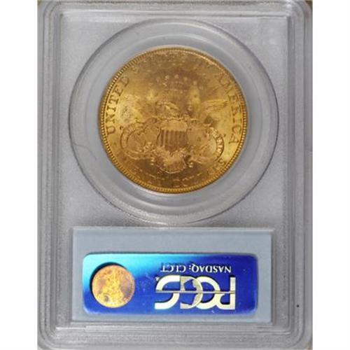 <B>1893 $20 MS63 PCGS.</B></I> Shimmering mint frost and lovely lime-green and peach toning generate considerable eye appeal for this Philadelphia Mint double eagle. Small, scattered marks seem congruent with the Select Mint State grade assessment. <BR><BR><B>Coin Engraver:</B> James B. Longacre<BR><BR><b>Shipping:</b> Coins & Currency (<a target="_blank" href="http://www.heritageauctions.com/common/shipping.php">view shipping information</a>\)