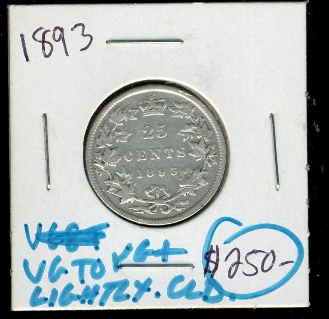 1893 25¢ Abt VG, lightly cleaned.