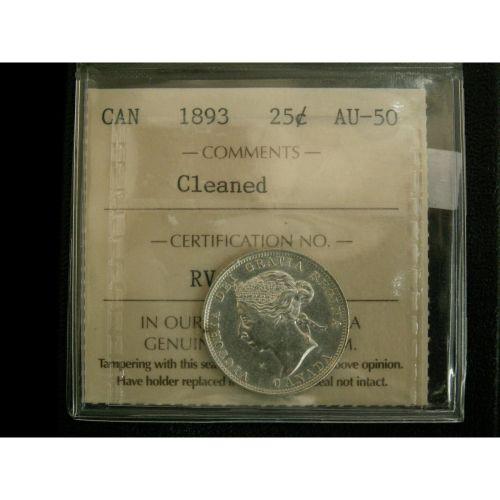 1893 25¢ ICCS AU-50 cleaned but still decent. A white example