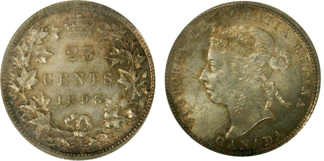 1893 25¢ ICCS MS64. Absolutely fantastic key date example with full strike, lustre and great eye appeal. A Must See