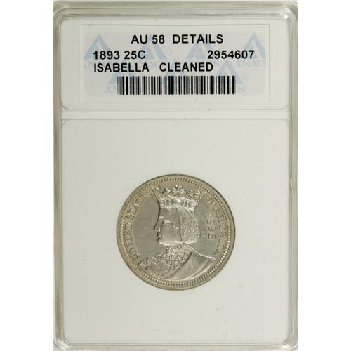 1893 25C Isabella Quarter--Cleaned--ANACS. AU58 Deta