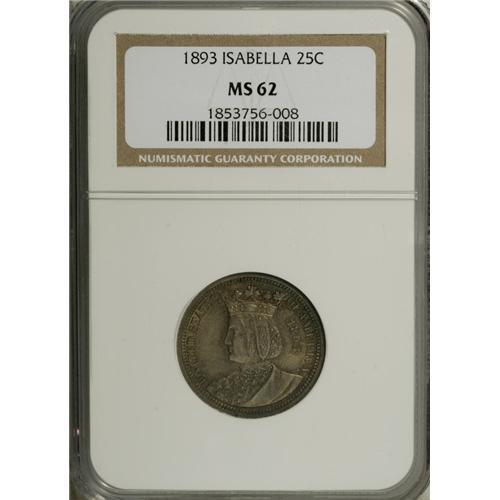 1893 25C Isabella Quarter MS62 NGC. Splendid blended a