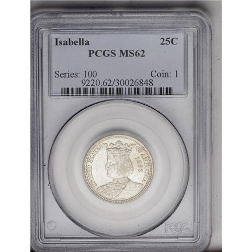 1893 25C Isabella Quarter MS62 PCGS. Lustrous with ple 1893[25C] Isabella Quarter MS62 PCGS.