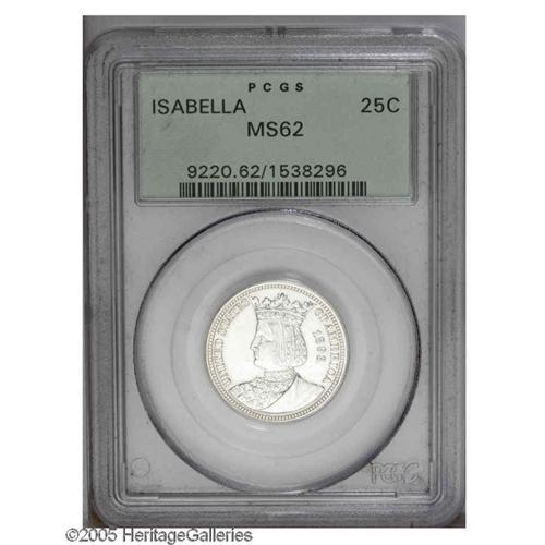 1893 25C Isabella Quarter MS62 PCGS. White surfaces wi 1893[25C] Isabella Quarter MS62 PCGS.