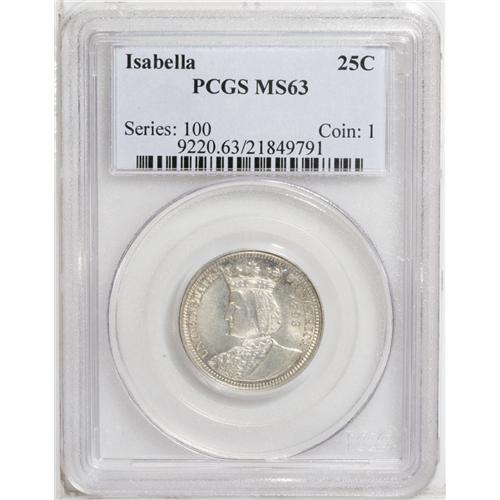 1893 25C Isabella Quarter MS63 PCGS. A highly lustrous