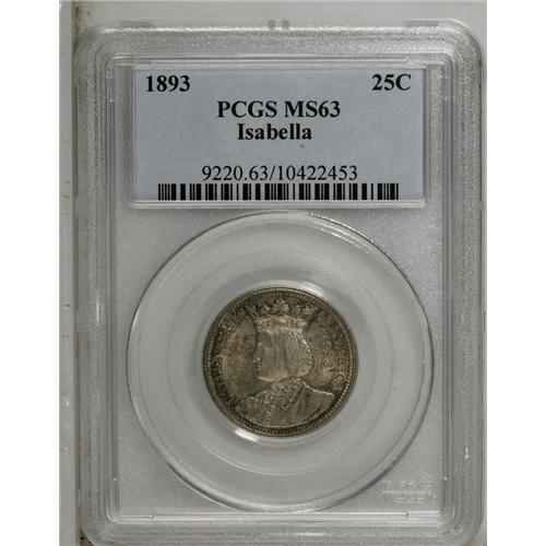 1893 25C Isabella Quarter MS63 PCGS. Select and well s