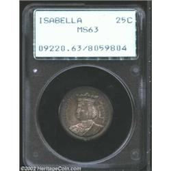 1893 25C Isabella Quarter MS63 PCGS. Sharply defined and minimally marked for the grade with russet.