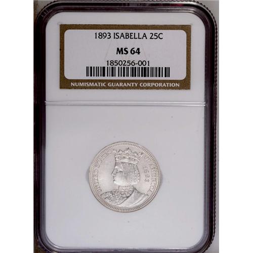 1893 25C Isabella Quarter MS64 NGC. Frosty luster ador 1893[25C] Isabella Quarter MS64 NGC.