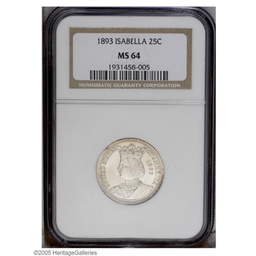 1893 25C Isabella Quarter MS64 NGC. Lustrous surfaces 1893[25C] Isabella Quarter MS64 NGC.