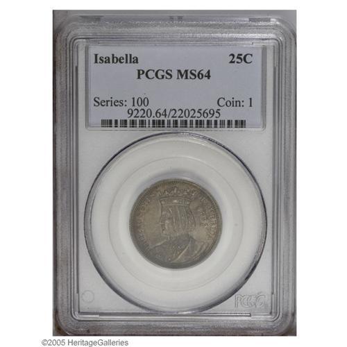 1893 25C Isabella Quarter MS64 PCGS. A bold portrait w 1893[25C] Isabella Quarter MS64 PCGS.