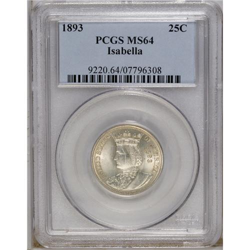 1893 25C Isabella Quarter MS64 PCGS. Highly lustrous w