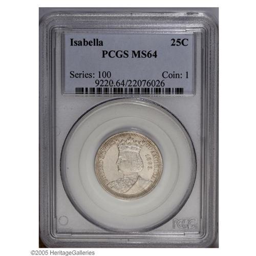 <B>1893<25C> Isabella Quarter MS64 PCGS.</B></I> Mostly untoned and exceptionally high-end for the grade with surfaces that appear to be free from marks.