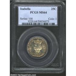 1893 25C Isabella Quarter MS64 PCGS. Rich speckles of tobacco-brown and cobalt-blue patina encroach upon the centers. Lustrous and well struck with clean surfaces and pleasing eye appeal. Important notice: We expect to be auctioning lots at the rate of 200-250 per hour. Sometimes eBay Premier live bid software cannot keep up with that pace, so we strongly recommend that you place a realistic proxy bid now as insurance to avoid disappointment. Also please note that all Heritage/CAA lots purchased through eBay Premier carry a 20% Buyer's Premium. Please make sure you read the Terms and Conditions.