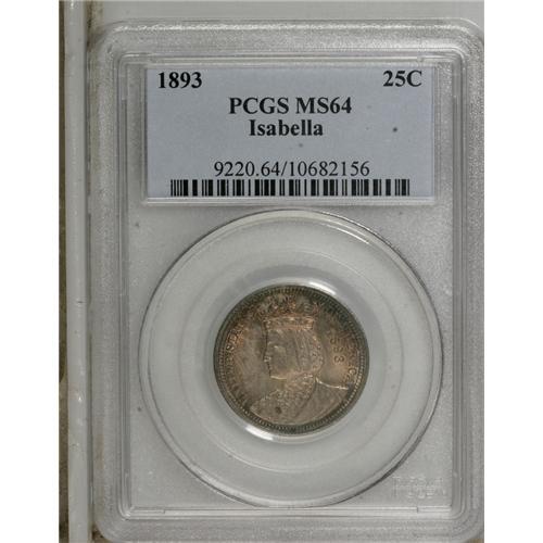 1893 25C Isabella Quarter MS64 PCGS. Richly and origin