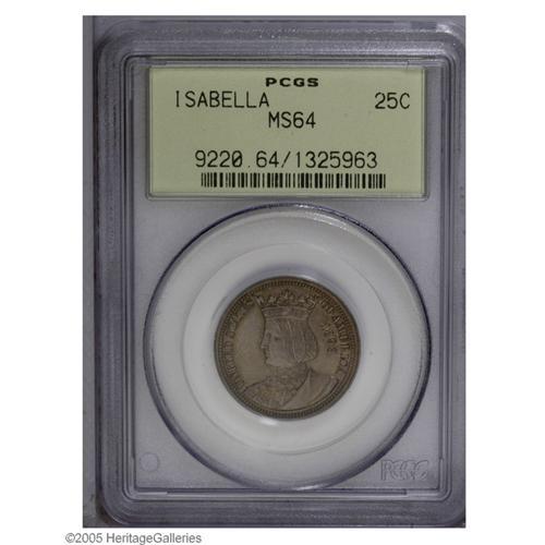 <B>1893<25C> Isabella Quarter MS64 PCGS.</B></I> Toned a deep steel-gray with some golden and charcoal gray accenting the devices. Superb underlying luster.