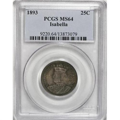 <B>1893 25C Isabella Quarter MS64 PCGS.</B></I> Pleasing preservation and uncommonly strong detail are the prime draws of this attractive Isabella quarter. Subtle luster shines beneath warm rose, amber, and violet patina. A great representative of this early classic commemorative.<BR><BR><b>Shipping:</b> Coins & Currency (<a target="_blank" href="http://www.heritageauctions.com/common/shipping.php">view shipping information</a>)