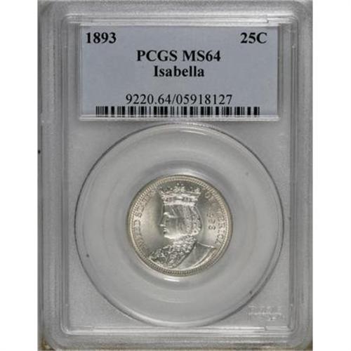 <B>1893 25C Isabella Quarter MS64 PCGS.</B></I> A gorgeous near-Gem with brilliant and satiny silver luster, and entirely untoned surfaces.<BR><BR><b>Shipping:</b> Coins & Currency (<a target="_blank" href="http://www.heritageauctions.com/common/shipping.php">view shipping information</a>)