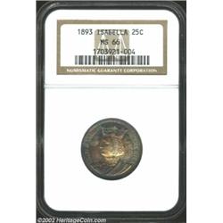 1893 25C Isabella Quarter MS66 NGC. A gorgeous coin for the toning enthusiast, both sides display ov