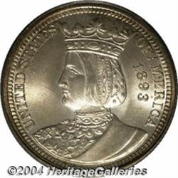 <table><tr><td><TABLE cellSpacing=0 cellPadding=0 width="100%" bgColor=#000000 border=0><TBODY> <TR><TD width="100%"><TABLE cellSpacing=1 cellPadding=3 width="100%" border=0><TBODY><TR><TD width="100%" bgColor=#79735c><FONT face=arial color=#ffffff size=3><B>Description</B> </FONT></TD></TR><TR><TD width="100%" bgColor=#ffffff><FONT face=arial size=2><B>1893 25C Isabella Quarter MS66 PCGS.</B></I> The rich, lustrous surfaces are essentially mark-free. Wholly original steel-lavender and sea-green iridescence overlays the reverse side. A fully struck, pristine coin for the discerning Commemorative collector. </FONT></TD></TR></TBODY></TABLE></TD></TR></TBODY></TABLE><BR><A name=PricesRealized></A><TABLE cellSpacing=0 cellPadding=0 width="100%" bgColor=#000000 border=0><TBODY><TR><TD width="100%"><TABLE cellSpacing=1 cellPadding=3 width="100%" border=0><TBODY><TR><TD width="100%" bgColor=#79735c><A name=PR><FONT face=arial color=#ffffff size=3><B>Previous Prices from Heritage Auctions</B> </FONT></A></TD></TR><TR><TD bgColor=#f6f6ed><TABLE cellSpacing=0 cellPadding=0 width="100%" border=1><TBODY><TR><TD align=middle width="33%"><B>Date</B></TD><TD align=middle width="33%"><B>Service</B></TD><TD align=middle width="33%"><B>Price</B></TD></TR><TR bgColor=whitesmoke><TD width="33%"><B>12/30/2003</B></TD><TD width="33%">PCGS</TD><TD width="33%">$3,105.00</TD></TR><TR bgColor=whitesmoke><TD width="33%"><B>02/01/2000</B></TD><TD width="33%">NGC</TD><TD width="33%">$2,300.00</TD></TR><TR bgColor=whitesmoke><TD width="33%"><B>01/28/2004</B></TD><TD width="33%">NGC</TD><TD width="33%">$3,450.00</TD></TR><TR bgColor=whitesmoke><TD width="33%"><B>05/03/2003</B></TD><TD width="33%">PCGS</TD><TD width="33%">$2,875.00</TD></TR><TR bgColor=whitesmoke><TD width="33%"><B>03/01/2003</B></TD><TD width="33%">NGC</TD><TD width="33%">$2,990.00</TD></TR><TR bgColor=whitesmoke><TD width="33%"><B>01/11/2003</B></TD><TD width="33%">PCGS</TD><TD width="33%">$3,220.00</TD></TR><TR bgColor=whitesmoke><TD width="33%"><B>01/11/2003</B></TD><TD width="33%">PCGS</TD><TD width="33%">$3,795.00</TD></TR><TR bgColor=whitesmoke><TD width="33%"><B>11/25/2002</B></TD><TD width="33%">NGC</TD><TD width="33%">$2,530.00</TD></TR><TR bgColor=whitesmoke><TD width="33%"><B>11/23/2002</B></TD><TD width="33%">PCGS</TD><TD width="33%">$2,817.50</TD></TR><TR bgColor=whitesmoke><TD width="33%"><B>07/30/2002</B></TD><TD width="33%">PCGS</TD><TD width="33%">$3,047.50</TD></TR><TR bgColor=whitesmoke><TD width="33%"><B>06/08/2002</B></TD><TD width="33%">PCGS</TD><TD width="33%">$3,450.00</TD></TR><TR bgColor=whitesmoke><TD width="33%"><B>06/08/2002</B></TD><TD width="33%">PCGS</TD><TD width="33%">$3,105.00</TD></TR><TR bgColor=whitesmoke><TD width="33%"><B>04/27/2002</B></TD><TD width="33%">PCGS</TD><TD width="33%">$3,680.00</TD></TR><TR bgColor=whitesmoke><TD width="33%"><B>04/27/2002</B></TD><TD width="33%">PCGS</TD><TD width="33%">$2,817.50</TD></TR><TR bgColor=whitesmoke><TD width="33%"><B>01/12/2002</B></TD><TD width="33%">NGC</TD><TD width="33%">$4,715.00</TD></TR><TR bgColor=whitesmoke><TD width="33%"><B>01/12/2002</B></TD><TD width="33%">NGC</TD><TD width="33%">$4,600.00</TD></TR><TR bgColor=whitesmoke><TD width="33%"><B>11/15/2001</B></TD><TD width="33%">PCGS</TD><TD width="33%">$5,865.00</TD></TR><TR bgColor=whitesmoke><TD width="33%"><B>08/08/2001</B></TD><TD width="33%">NGC</TD><TD width="33%">$1,897.50</TD></TR><TR bgColor=whitesmoke><TD width="33%"><B>08/08/2001</B></TD><TD width="33%">NGC</TD><TD width="33%">$3,565.00</TD></TR><TR bgColor=whitesmoke><TD width="33%"><B>04/14/2000</B></TD><TD width="33%">NGC</TD><TD width="33%">$2,403.50</TD></TR><TR bgColor=whitesmoke><TD width="33%"><B>08/13/1999</B></TD><TD width="33%">PCGS</TD><TD width="33%">$5,865.00</TD></TR><TR bgColor=whitesmoke><TD width="33%"><B>08/13/1999</B></TD><TD width="33%">NGC</TD><TD width="33%">$4,600.00</TD></TR><TR bgColor=whitesmoke><TD width="33%"><B>06/04/1999</B></TD><TD width="33%">PCGS</TD><TD width="33%">$5,520.00</TD></TR><TR bgColor=whitesmoke><TD width="33%"><B>08/17/1996</B></TD><TD width="33%">NGC</TD><TD width="33%">$1,925.00</TD></TR><TR bgColor=whitesmoke><TD width="33%"><B>01/06/1996</B></TD><TD width="33%">PCGS</TD><TD width="33%">$1,760.00</TD></TR><TR bgColor=whitesmoke><TD width="33%"><B>10/04/1995</B></TD><TD width="33%">NGC</TD><TD width="33%">$2,117.50</TD></TR><TR bgColor=whitesmoke><TD width="33%"><B>01/04/1995</B></TD><TD width="33%">NGC</TD><TD width="33%">$2,310.00</TD></TR><TR bgColor=whitesmoke><TD width="33%"><B>07/26/1994</B></TD><TD width="33%">NGC</TD><TD width="33%">$2,530.00</TD></TR><TR bgColor=whitesmoke><TD width="33%"><B>12/03/1993</B></TD><TD width="33%">PCGS</TD><TD width="33%">$2,640.00</TD></TR></TBODY></TABLE></TD></TR><TR><TD bgColor=#ffffff><FONT face=arial size=1 ?>PLEASE NOTE: All prices realized reflect the final hammer price PLUS the buyer's premium in auctions that charge a buyer's premium. Each item has a notation at the top of the listing indicating whether that lot included a buyer's premium. Example: A item that sells with a final hammer price of $100 and a 20% buyer's premium will display with a price realized of $120. All information listed is intended to be as accurate as possible, but errors are possible. Please use this guide carefully and inform us of any inaccuracies. </FONT></TD></TR></TBODY></TABLE></TD></TR></TBODY></TABLE><BR><TABLE cellSpacing=0 cellPadding=0 width="100%" bgColor=#000000 border=0><TBODY><TR><TD width="100%"><TABLE cellSpacing=1 cellPadding=3 width="100%" border=0><TBODY><TR><TD width="100%" bgColor=#79735c colSpan=6><FONT face=arial color=#ffffff size=3><B>Price Guide*</B> </FONT></TD></TR><TR bgColor=#f6f6ed><TD align=middle><B>Grade</B> </TD><TD align=middle><B>Coin World<BR>(Trends)</B> </TD><TD align=middle><B>Numismedia<BR>Retail</B> </TD><TD align=middle><B>Numismedia<BR>Wholesale</B> </TD><TD align=middle><B>Coin<BR>Universe</B> </TD><TD align=middle><B>Heritage<BR>Value