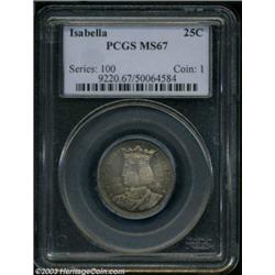 <table><tr><td><TABLE cellSpacing=0 cellPadding=0 width="100%" bgColor=#000000 border=0><TBODY> <TR><TD width="100%"><TABLE cellSpacing=1 cellPadding=3 width="100%" border=0><TBODY><TR><TD width="100%" bgColor=#79735c><FONT face=arial color=#ffffff size=3><B>Description</B> </FONT></TD></TR><TR><TD width="100%" bgColor=#ffffff><FONT face=arial size=2><B>1893 25C Isabella Quarter MS67 PCGS.</B></I> An outlandishly preserved example that boasts nearly flawless, frosty surfaces and swirls of orange and lilac toning along with bluish-green peripheral accents. Sure to please even the fussiest silver commemorative collector. Population: 24 in 67, 3 finer (10/03). </FONT></TD></TR></TBODY></TABLE></TD></TR></TBODY></TABLE><BR><A name=PricesRealized></A><TABLE cellSpacing=0 cellPadding=0 width="100%" bgColor=#000000 border=0><TBODY><TR><TD width="100%"><TABLE cellSpacing=1 cellPadding=3 width="100%" border=0><TBODY><TR><TD width="100%" bgColor=#79735c><A name=PR><FONT face=arial color=#ffffff size=3><B>Previous Prices from Heritage Auctions</B> </FONT></A></TD></TR><TR><TD bgColor=#f6f6ed><TABLE cellSpacing=0 cellPadding=0 width="100%" border=1><TBODY><TR><TD align=middle width="33%"><B>Date</B></TD><TD align=middle width="33%"><B>Service</B></TD><TD align=middle width="33%"><B>Price</B></TD></TR><TR bgColor=whitesmoke><TD width="33%"><B>01/11/2003</B></TD><TD width="33%">NGC</TD><TD width="33%">$3,910.00</TD></TR><TR bgColor=whitesmoke><TD width="33%"><B>01/12/2002</B></TD><TD width="33%">PCGS</TD><TD width="33%">$6,612.50</TD></TR><TR bgColor=whitesmoke><TD width="33%"><B>11/15/2001</B></TD><TD width="33%">PCGS</TD><TD width="33%">$8,625.00</TD></TR><TR bgColor=whitesmoke><TD width="33%"><B>01/08/1999</B></TD><TD width="33%">NGC</TD><TD width="33%">$3,105.00</TD></TR><TR bgColor=whitesmoke><TD width="33%"><B>11/07/1998</B></TD><TD width="33%">NGC</TD><TD width="33%">$5,280.00</TD></TR><TR bgColor=whitesmoke><TD width="33%"><B>08/07/1998</B></TD><TD width="33%">PCGS</TD><TD width="33%">$4,600.00</TD></TR><TR bgColor=whitesmoke><TD width="33%"><B>03/21/1998</B></TD><TD width="33%">PCGS</TD><TD width="33%">$5,290.00</TD></TR><TR bgColor=whitesmoke><TD width="33%"><B>08/16/1995</B></TD><TD width="33%">PCGS</TD><TD width="33%">$5,060.00</TD></TR><TR bgColor=whitesmoke><TD width="33%"><B>07/30/1994</B></TD><TD width="33%">NGC</TD><TD width="33%">$5,500.00</TD></TR></TBODY></TABLE></TD></TR><TR><TD bgColor=#ffffff><FONT face=arial size=1 ?>PLEASE NOTE: All prices realized reflect the final hammer price PLUS the buyer's premium in auctions that charge a buyer's premium. Each item has a notation at the top of the listing indicating whether that lot included a buyer's premium. Example: A item that sells with a final hammer price of $100 and a 20% buyer's premium will display with a price realized of $120. All information listed is intended to be as accurate as possible, but errors are possible. Please use this guide carefully and inform us of any inaccuracies. </FONT></TD></TR></TBODY></TABLE></TD></TR></TBODY></TABLE><BR><TABLE cellSpacing=0 cellPadding=0 width="100%" bgColor=#000000 border=0><TBODY><TR><TD width="100%"><TABLE cellSpacing=1 cellPadding=3 width="100%" border=0><TBODY><TR><TD width="100%" bgColor=#79735c colSpan=6><FONT face=arial color=#ffffff size=3><B>Price Guide*</B> </FONT></TD></TR><TR bgColor=#f6f6ed><TD align=middle><B>Grade</B> </TD><TD align=middle><B>Coin World<BR>(Trends)</B> </TD><TD align=middle><B>Numismedia<BR>Retail</B> </TD><TD align=middle><B>Numismedia<BR>Wholesale</B> </TD><TD align=middle><B>Coin<BR>Universe</B> </TD><TD align=middle><B>Heritage<BR>Value Index</B> </TD></TR><TR bgColor=#ffffff><TD align=middle>66</TD><TD align=right>$4,500.00</TD><TD align=right>---</TD><TD align=right>$3,320.00</TD><TD align=right>$4,800.00</TD><TD align=right>$3,219.50</TD></TR><TR style="FONT-WEIGHT: bold" bgColor=#cccfdd><TD align=middle>67</TD><TD align=right>$8,500.00</TD><TD align=right>---</TD><TD align=right>$6,000.00</TD><TD align=right>$9,800.00</TD><TD align=right>$5,703.33</TD></TR><TR bgColor=#ffffff><TD align=middle>68</TD><TD align=right>---</TD><TD align=right>---</TD><TD align=right>$13,750.00</TD><TD align=right>$30,000.00</TD><TD align=right>$21,000.00</TD></TR><TR bgColor=#ffffff><TD colSpan=6><FONT size=1>*All information listed is intended to be as accurate as possible, but errors are possible. No item may be returned or refused based on this information which is provided as a service to our customers. You should contact each pricing source directly to determine the accuracy of this information. </FONT></TD></TR></TBODY></TABLE></TD></TR></TBODY></TABLE><BR><TABLE cellSpacing=0 cellPadding=0 width="100%" bgColor=#000000 border=0><TBODY><TR><TD width="100%"><TABLE cellSpacing=1 cellPadding=3 width="100%" border=0><TBODY><TR><TD width="100%" bgColor=#79735c><FONT face=arial color=#ffffff size=3><B>Population Guide</B> </FONT></TD></TR><TR bgColor=#ffffff><TD align=middle><!-- Begin Output of Population Grid--><TABLE cellSpacing=0 cellPadding=0 width="100%" border=0><TBODY><TR><TD vAlign=center><TABLE cellSpacing=0 width="100%" border=1 cellsadding="3"><TBODY><TR><TD vAlign=center><TABLE cellSpacing=0 cellPadding=3 width="100%" border=1><TBODY><TR><TD vAlign=center align=middle bgColor=#f0f1e8 colSpan=2 <CENTER><FONT face=Arial size=2><B>PCGS Pop </B></FONT><CENTER></CENTER></TD><TD vAlign=center align=middle bgColor=#f0f1e8 colSpan=2><CENTER><FONT face=Arial size=2><B>NGC Pop</B></CENTER></FONT></TD></TR><TR><TD vAlign=center><FONT face=Arial size=2>(67)</FONT> </TD><TD vAlign=center align=right><FONT face=Arial size=2>24</FONT> </TD><TD vAlign=center><FONT face=Arial size=2>(67)</FONT> </TD><TD vAlign=center align=right><FONT face=Arial size=2>25</FONT> </TD></TR><TR><TD vAlign=center><FONT face=Arial size=2>(>67)</FONT> </TD><TD vAlign=center align=right><FONT face=Arial size=2>3</FONT> </TD><TD vAlign=center><FONT face=Arial size=2>(>67)</FONT> </TD><TD vAlig