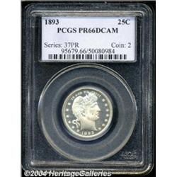 <table><tbody><tr><td><table> <TR><TD width="100%"><TABLE cellSpacing=1 cellPadding=3 width="100%" border=0><TBODY><TR><TD width="100%" bgColor=#79735c><FONT face=arial color=#ffffff size=3><B>Description</B> </FONT></TD></TR><TR><TD width="100%" bgColor=#ffffff><FONT face=arial size=2><B>1893 25C PR66 Deep Cameo PCGS.</B></I> A heavily frosted Gem specimen with glassy fields and just a hint of golden color on the lower half of the reverse. Although cameo proofs from this second year of issue aren't particularly elusive, this example takes the contrast to an extreme level. Population: 1 in 66 Deep Cameo, 1 finer (10/03). </FONT></TD></TR></TBODY></TABLE></TD></TR></TBODY></TABLE><BR><A name=PricesRealized></A><TABLE cellSpacing=0 cellPadding=0 width="100%" bgColor=#000000 border=0><TBODY><TR><TD width="100%"><TABLE cellSpacing=1 cellPadding=3 width="100%" border=0><TBODY><TR><TD width="100%" bgColor=#79735c><A name=PR><FONT face=arial color=#ffffff size=3><B>Previous Prices from Heritage Auctions</B> </FONT></A></TD></TR><TR><TD bgColor=#f6f6ed>No Prior Data Recorded </TD></TR><TR><TD bgColor=#ffffff><FONT face=arial size=1 ?>PLEASE NOTE: All prices realized reflect the final hammer price PLUS the buyer's premium in auctions that charge a buyer's premium. Each item has a notation at the top of the listing indicating whether that lot included a buyer's premium. Example: A item that sells with a final hammer price of $100 and a 20% buyer's premium will display with a price realized of $120. All information listed is intended to be as accurate as possible, but errors are possible. Please use this guide carefully and inform us of any inaccuracies. </FONT></TD></TR></TBODY></TABLE></TD></TR></TBODY></TABLE><BR><TABLE cellSpacing=0 cellPadding=0 width="100%" bgColor=#000000 border=0><TBODY><TR><TD width="100%"><TABLE cellSpacing=1 cellPadding=3 width="100%" border=0><TBODY><TR><TD width="100%" bgColor=#79735c colSpan=6><FONT face=arial color=#ffffff size=3><B>Price Guide*</B> </FONT></TD></TR><TR bgColor=#f6f6ed><TD align=middle><B>Grade</B> </TD><TD align=middle><B>Coin World<BR>(Trends)</B> </TD><TD align=middle><B>Numismedia<BR>Retail</B> </TD><TD align=middle><B>Numismedia<BR>Wholesale</B> </TD><TD align=middle><B>Coin<BR>Universe</B> </TD><TD align=middle><B>Heritage<BR>Value Index</B> </TD></TR><TR bgColor=#ffffff><TD align=middle>65</TD><TD align=right>---</TD><TD align=right>---</TD><TD align=right>---</TD><TD align=right>---</TD><TD align=right>$1,287.00</TD></TR><TR style="FONT-WEIGHT: bold" bgColor=#cccfdd><TD align=middle>66</TD><TD align=right>---</TD><TD align=right>---</TD><TD align=right>---</TD><TD align=right>---</TD><TD align=right>---</TD></TR><TR bgColor=#ffffff><TD align=middle>67</TD><TD align=right>---</TD><TD align=right>---</TD><TD align=right>---</TD><TD align=right>---</TD><TD align=right>---</TD></TR><TR bgColor=#ffffff><TD colSpan=6><FONT size=1>*All information listed is intended to be as accurate as possible, but errors are possible. No item may be returned or refused based on this information which is provided as a service to our customers. You should contact each pricing source directly to determine the accuracy of this information. </FONT></TD></TR></TBODY></TABLE></TD></TR></TBODY></TABLE><BR><TABLE cellSpacing=0 cellPadding=0 width="100%" bgColor=#000000 border=0><TBODY><TR><TD width="100%"><TABLE cellSpacing=1 cellPadding=3 width="100%" border=0><TBODY><TR><TD width="100%" bgColor=#79735c><FONT face=arial color=#ffffff size=3><B>Population Guide</B> </FONT></TD></TR><TR bgColor=#ffffff><TD align=middle><!-- Begin Output of Population Grid--><TABLE cellSpacing=0 cellPadding=0 width="100%" border=0><TBODY><TR><TD vAlign=center><TABLE cellSpacing=0 width="100%" border=1 cellsadding="3"><TBODY><TR><TD vAlign=center><TABLE cellSpacing=0 cellPadding=3 width="100%" border=1><TBODY><TR><TD vAlign=center align=middle bgColor=#f0f1e8 colSpan=2 <CENTER><FONT face=Arial size=2><B>PCGS Pop </B></FONT><CENTER></CENTER></TD><TD vAlign=center align=middle bgColor=#f0f1e8 colSpan=2><CENTER><FONT face=Arial size=2><B>NGC Pop</B></CENTER></FONT></TD></TR><TR><TD vAlign=center><FONT face=Arial size=2>(66)</FONT> </TD><TD vAlign=center align=right><FONT face=Arial size=2>1</FONT> </TD><TD vAlign=center><FONT face=Arial size=2>(66)</FONT> </TD><TD vAlign=center align=right><FONT face=Arial size=2>0</FONT> </TD></TR><TR><TD vAlign=center><FONT face=Arial size=2>(>66)</FONT> </TD><TD vAlign=center align=right><FONT face=Arial size=2>1</FONT> </TD><TD vAlign=center><FONT face=Arial size=2>(>66)</FONT> </TD><TD vAlign=center align=right><FONT face=Arial size=2>2</FONT> </TD></TR></TBODY></TABLE></TD></TR></TBODY></TABLE></TD></TR></TBODY></TABLE><!-- End Output of Population Grid--></TD></TR></TBODY></TABLE></TD></TR></TBODY></TABLE><BR><TABLE cellSpacing=0 cellPadding=0 width="100%" bgColor=#000000 border=0><TBODY><TR> <font color='#000000'><span style='background-color: #FFFFFF'><td bgcolor='#FFFFFE'> Important notice: Heritage usually auctions material at the rate of 200-250 lots per hour. On some occasions eBay Live bid software or the Internet may not be able to keep up with the pace of the auction. We recommend placing a realistic absentee bid now as insurance to avoid disappointment. Occasionally the auctioneer may eliminate or reject an eBay Live bid, and the auctioneer may also reopen a lot after the close of the eBay live bidding (usually because we missed an audience bid), and may reject your bid even if it shows you as the winning bidder. By bidding via eBay Live, you agree that Heritage may award the lot to another bidder at its sole discretion under the circumstances described above or any other reasonable circumstances. Since eBay bids are not shown to us until we open the lot on the floor, we treat those bids just like floor bids. In most cases the floor responds before the eBay bid is presented to us, due to Internet lag time, so for consistency we have made it a p