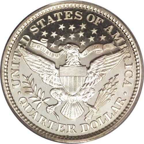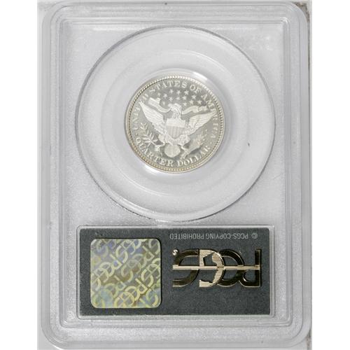 <B>1893<25C> PR66 PCGS.</B></I> This is a truly beautiful, crisply struck proof Barber quarter with jet-black fields and thickly frosted snow-white devices. It shows the stark white-on-black contrast of a modern proof striking. Exquisitely preserved and virtually free of any imperfection, the coin displays a wispy lintmark (as struck) just to the right of Liberty's earlobe. A great Premium Gem proof specimen. Certified in a green label holder. Population: 31 in 66, 18 finer (7/06).
