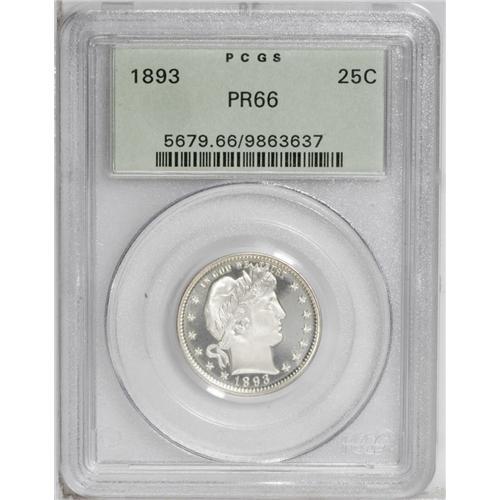 1893 25C PR66 PCGS. This is a truly beautiful, crisply