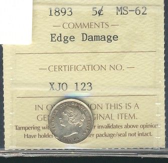 1893 5¢ ICCS MS-62 EDGE DAMAGE NICE.