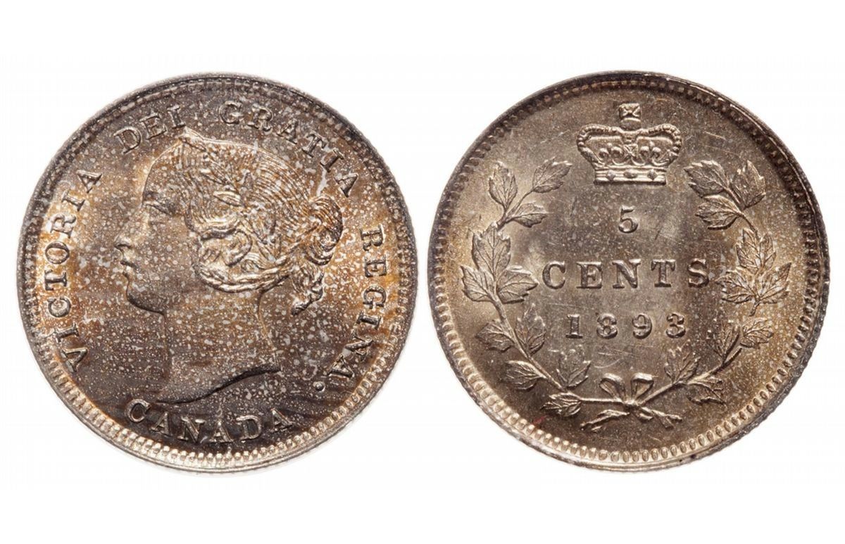 1893 5¢ ICCS MS65. Attractively toned. Scarce in Gem condition. Lovely example.