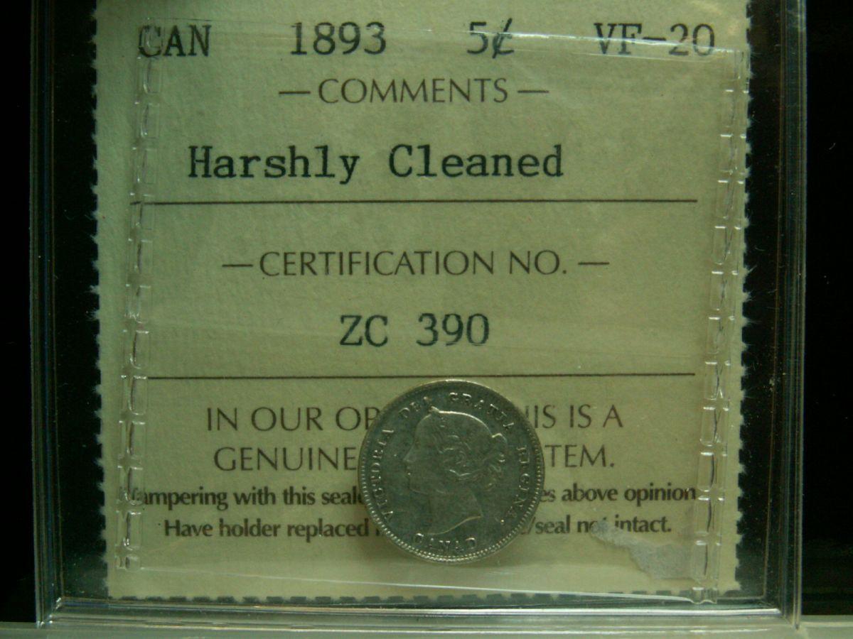 1893 5¢ ICCS VF20 Harshly Cleaned
