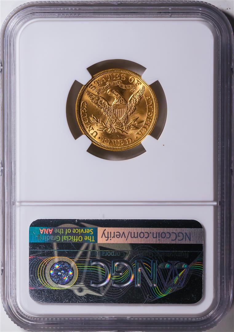 One 1893 $5 Liberty Head Half Eagle Gold Coin NGC MS64.