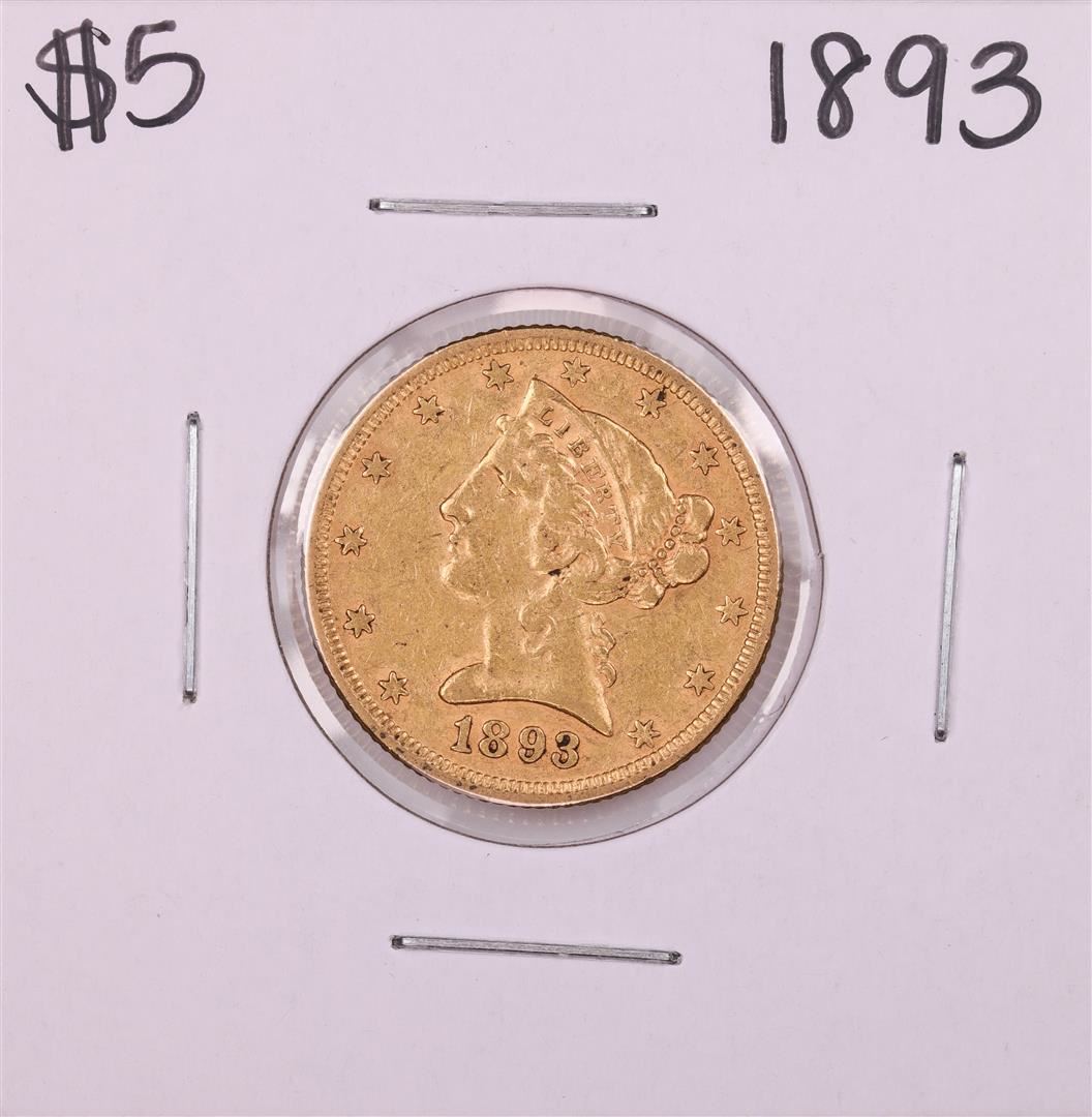 One 1893 $5 Liberty Head Half Eagle Gold Coin.
