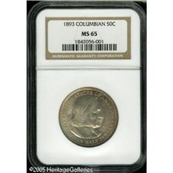 <B>1893 50C Columbian MS65 NGC.</B></I> A lustrous and suitably struck Gem that has blushes of peach color near the peripheries. A pleasing example of this conditionally scarce early Commemorative issue. Lot:8479