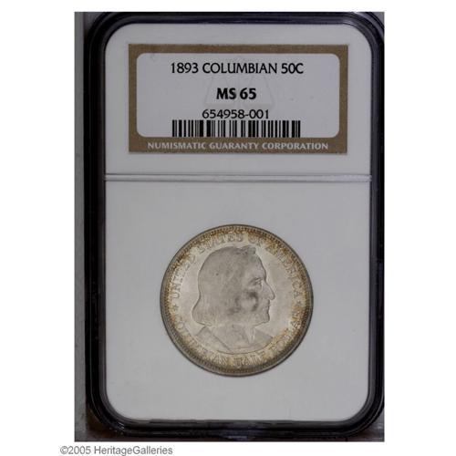 1893 50C Columbian MS65 NGC. Golden-brown patina with 1893[50C] Columbian MS65 NGC.