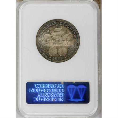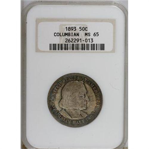<B>1893 50C Columbian MS65 NGC.</B></I> NGC Census: (611/164). PCGS Population (424/149). Mintage: 1,550,405. Numismedia Wsl. Price for NGC/PCGS coin in MS65: $765. (#9297)<BR><BR><b>Shipping:</b> Coins & Currency (<a target="_blank" href="http://www.heritageauctions.com/common/shipping.php">view shipping information</a>)