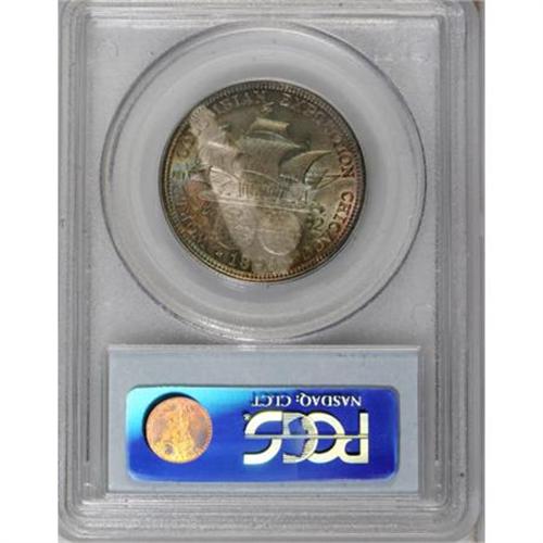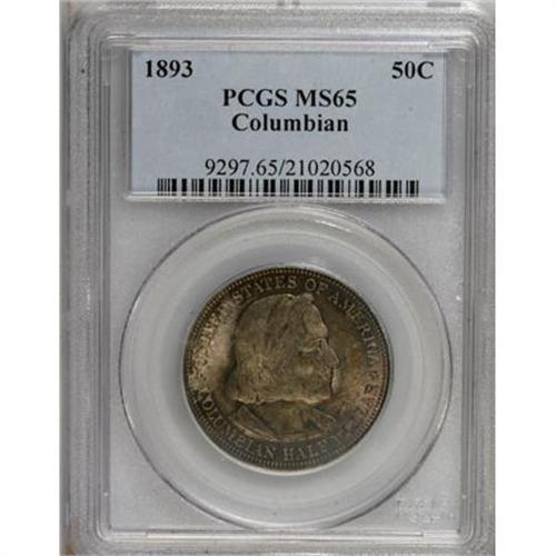 <B>1893 50C Columbian MS65 PCGS.</B></I> PCGS Population (430/149). NGC Census: (611/164). Mintage: 1,550,405. Numismedia Wsl. Price for NGC/PCGS coin in MS65: $765. (#9297)<BR><BR><b>Shipping:</b> Coins & Currency (<a target="_blank" href="http://www.heritageauctions.com/common/shipping.php">view shipping information</a>)