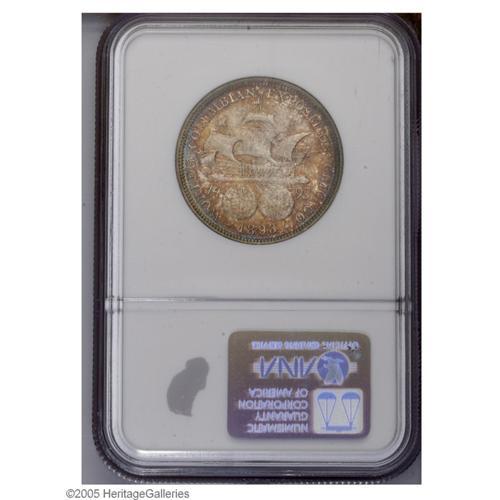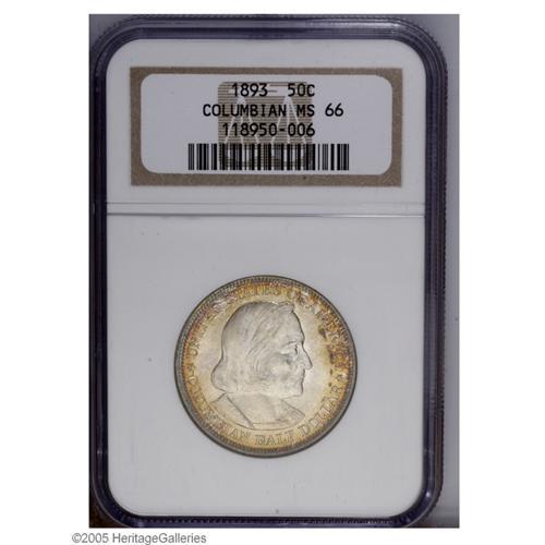1893 50C Columbian MS66 NGC. Antique-gold and hints of 1893[50C] Columbian MS66 NGC.
