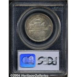 <B>1893<50C> Columbian MS66 PCGS.</B></I> A truly original Gem, the obverse of this Columbian half shows gray on the obverse high points and a spectacular royal-blue color over most of the fields. The reverse shows more gray coloration with hints of royal-blue and champagne. <BR><BR><B>Important notice:</B> Heritage usually auctions material at the rate of 200-250 lots per hour. On some occasions eBay Live bid software or the Internet may not be able to keep up with the pace of the auction. We recommend placing a realistic absentee bid now as insurance to avoid disappointment. Occasionally the auctioneer may eliminate or reject an eBay Live bid, and the auctioneer may also reopen a lot after the close of the eBay live bidding (usually because we missed an audience bid), and may reject your bid even if it shows you as the winning bidder. By bidding via eBay Live, you agree that Heritage may award the lot to another bidder at its sole discretion under the circumstances described above or any other reasonable circumstances. Since eBay bids are not shown to us until we open the lot on the floor, we treat those bids just like floor bids. In most cases the floor responds before the eBay bid is presented to us, due to Internet lag time, so for consistency we have made it a policy that floor bids are always considered first over tie eBay live bids. Also please note that all Heritage lots purchased through eBay Live carry a 20% Buyer's Premium. Please make sure you read the Terms and Conditions before you bid. </span></font></tr></table></td></tr></table>