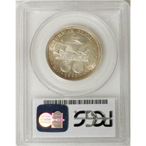 <B>1893 50C Columbian MS66 PCGS.</B></I> Delicate gold-green patina graces the margins of this Premium Gem, while the centers have a softer silver-gray appearance. Pleasingly detailed with exquisite luster, and largely unavailable any finer; PCGS has graded only seven such pieces (9/07).<BR><I>From The Sterling Collection.</B></I><BR><BR><b>Shipping:</b> Coins & Currency (<a target="_blank" href="http://www.heritageauctions.com/common/shipping.php">view shipping information</a>)