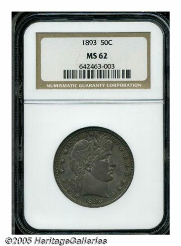 <B>1893<50C> MS62 NGC.</B></I> Sharply struck and deeply toned with full underlying mint frost. Both sides exhibit warm golden-brown and steel color.