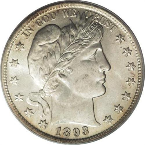 1893 50C MS64 PCGS. Both sides are awash in bright, pl