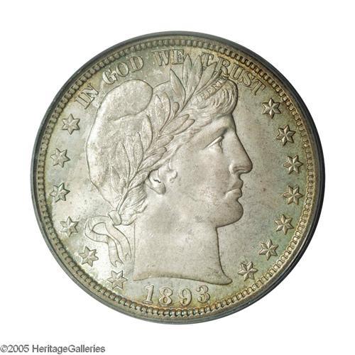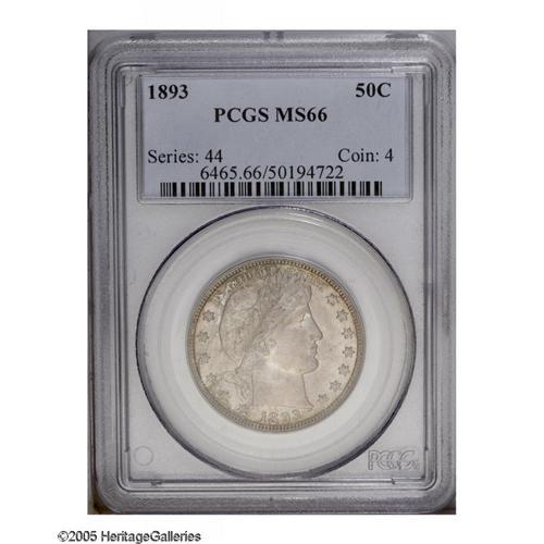 1893 50C MS66 PCGS. Sharply defined, as befits a produ 1893[50C] MS66 PCGS.