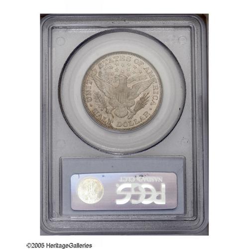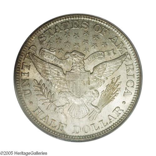 <B>1893<50C> MS66 PCGS.</B></I> Sharply defined, as befits a product of the Philadelphia mint, the surfaces are thickly frosted and nearly blemish-free, the most noticeable mark occurring on Liberty's jaw. Both sides have a silver-gray appearance, and display touches of aqua, beige, and gold in selected areas. A second-year issue, the 1893 was apparently not saved as extensively as the 1892. Population: 11 in 66, 0 finer (12/05).