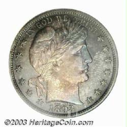 <table><tr><td><TABLE cellSpacing=0 cellPadding=0 width="100%" bgColor=#000000 border=0><TBODY> <TR><TD width="100%"><TABLE cellSpacing=1 cellPadding=3 width="100%" border=0><TBODY><TR><TD width="100%" bgColor=#79735c><FONT face=arial color=#ffffff size=3><B>Description</B> </FONT></TD></TR><TR><TD width="100%" bgColor=#ffffff><FONT face=arial size=2><B>1893 50C PR67 NGC.</B></I> Second year of issue and a nearly perfect example that is deeply reflective and interestingly toned. Each side shows pinkish-rose centers with sea-green patina around the margins. A terrific type coin and an early date to boot. Population: 19 in 67, 4 finer (7/03). </FONT></TD></TR></TBODY></TABLE></TD></TR></TBODY></TABLE><BR><A name=PricesRealized></A><TABLE cellSpacing=0 cellPadding=0 width="100%" bgColor=#000000 border=0><TBODY><TR><TD width="100%"><TABLE cellSpacing=1 cellPadding=3 width="100%" border=0><TBODY><TR><TD width="100%" bgColor=#79735c><A name=PR><FONT face=arial color=#ffffff size=3><B>Previous Prices from Heritage Auctions</B> </FONT></A></TD></TR><TR><TD bgColor=#f6f6ed><TABLE cellSpacing=0 cellPadding=0 width="100%" border=1><TBODY><TR><TD align=middle width="33%"><B>Date</B></TD><TD align=middle width="33%"><B>Service</B></TD><TD align=middle width="33%"><B>Price</B></TD></TR><TR bgColor=whitesmoke><TD width="33%"><B>04/05/2001</B></TD><TD width="33%">NGC</TD><TD width="33%">$4,025.00</TD></TR><TR bgColor=whitesmoke><TD width="33%"><B>09/21/1996</B></TD><TD width="33%">NGC</TD><TD width="33%">$3,740.00</TD></TR><TR bgColor=whitesmoke><TD width="33%"><B>08/01/1999</B></TD><TD width="33%">PCGS</TD><TD width="33%">$7,360.00</TD></TR><TR bgColor=whitesmoke><TD width="33%"><B>11/01/1999</B></TD><TD width="33%">NGC</TD><TD width="33%">$5,775.00</TD></TR></TBODY></TABLE></TD></TR><TR><TD bgColor=#ffffff><FONT face=arial size=1 ?>PLEASE NOTE: All prices realized reflect the final hammer price PLUS the buyer's premium in auctions that charge a buyer's premium. Each item has a notation at the top of the listing indicating whether that lot included a buyer's premium. Example: A item that sells with a final hammer price of $100 and a 20% buyer's premium will display with a price realized of $120. All information listed is intended to be as accurate as possible, but errors are possible. Please use this guide carefully and inform us of any inaccuracies. </FONT></TD></TR></TBODY></TABLE></TD></TR></TBODY></TABLE><BR><TABLE cellSpacing=0 cellPadding=0 width="100%" bgColor=#000000 border=0><TBODY><TR><TD width="100%"><TABLE cellSpacing=1 cellPadding=3 width="100%" border=0><TBODY><TR><TD width="100%" bgColor=#79735c colSpan=6><FONT face=arial color=#ffffff size=3><B>Price Guide*</B> </FONT></TD></TR><TR bgColor=#f6f6ed><TD align=middle><B>Grade</B> </TD><TD align=middle><B>Coin World<BR>(Trends)</B> </TD><TD align=middle><B>Numismedia<BR>Retail</B> </TD><TD align=middle><B>Numismedia<BR>Wholesale</B> </TD><TD align=middle><B>Coin<BR>Universe</B> </TD><TD align=middle><B>Heritage<BR>Value Index</B> </TD></TR><TR bgColor=#ffffff><TD align=middle>66</TD><TD align=right>---</TD><TD align=right>---</TD><TD align=right>$3,925.00</TD><TD align=right>$6,000.00</TD><TD align=right>$4,200.00</TD></TR><TR style="FONT-WEIGHT: bold" bgColor=#cccfdd><TD align=middle>67</TD><TD align=right>---</TD><TD align=right>---</TD><TD align=right>$5,750.00</TD><TD align=right>$8,600.00</TD><TD align=right>$6,020.00</TD></TR><TR bgColor=#ffffff><TD align=middle>68</TD><TD align=right>---</TD><TD align=right>---</TD><TD align=right>$10,500.00</TD><TD align=right>---</TD><TD align=right>---</TD></TR><TR bgColor=#ffffff><TD colSpan=6><FONT size=1>*All information listed is intended to be as accurate as possible, but errors are possible. No item may be returned or refused based on this information which is provided as a service to our customers. You should contact each pricing source directly to determine the accuracy of this information. </FONT></TD></TR></TBODY></TABLE></TD></TR></TBODY></TABLE><BR><TABLE cellSpacing=0 cellPadding=0 width="100%" bgColor=#000000 border=0><TBODY><TR><TD width="100%"><TABLE cellSpacing=1 cellPadding=3 width="100%" border=0><TBODY><TR><TD width="100%" bgColor=#79735c><FONT face=arial color=#ffffff size=3><B>Population Guide</B> </FONT></TD></TR><TR bgColor=#ffffff><TD align=middle><!-- Begin Output of Population Grid--><TABLE cellSpacing=0 cellPadding=0 width="100%" border=0><TBODY><TR><TD vAlign=center><TABLE cellSpacing=0 width="100%" border=1 cellsadding="3"><TBODY><TR><TD vAlign=center><TABLE cellSpacing=0 cellPadding=3 width="100%" border=1><TBODY><TR><TD vAlign=center align=middle bgColor=#f0f1e8 colSpan=2 <CENTER><FONT face=Arial size=2><B>PCGS Pop </B></FONT><CENTER></CENTER></TD><TD vAlign=center align=middle bgColor=#f0f1e8 colSpan=2><CENTER><FONT face=Arial size=2><B>NGC Pop</B></CENTER></FONT></TD></TR><TR><TD vAlign=center><FONT face=Arial size=2>(67)</FONT> </TD><TD vAlign=center align=right><FONT face=Arial size=2>13</FONT> </TD><TD vAlign=center><FONT face=Arial size=2>(67)</FONT> </TD><TD vAlign=center align=right><FONT face=Arial size=2>19</FONT> </TD></TR><TR><TD vAlign=center><FONT face=Arial size=2>(>67)</FONT> </TD><TD vAlign=center align=right><FONT face=Arial size=2>1</FONT> </TD><TD vAlign=center><FONT face=Arial size=2>(>67)</FONT> </TD><TD vAlign=center align=right><FONT face=Arial size=2>4</FONT> </TD></TR></TBODY></TABLE></TD></TR></TBODY></TABLE></TD></TR></TBODY></TABLE><!-- End Output of Population Grid--></TD></TR></TBODY></TABLE></TD></TR></TBODY></TABLE><BR><TABLE cellSpacing=0 cellPadding=0 width="100%" bgColor=#000000 border=0><TBODY><TR> Important notice: Heritage usually auctions material at the rate of 200-250 lots per hour. On some occasions eBay Live bid software or the Internet may not be able to keep up with the pace of the auction. We recommend placing a realistic absentee bid now as insurance to avoid disappointment. Occasionally the auctioneer may eliminate or