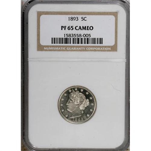 <B>1893 5C PR65 Cameo NGC.</B></I> NGC Census: (27/33). PCGS Population (15/19). (#83891)<BR><BR><b>Shipping:</b> Coins & Currency (<a target="_blank" href="http://www.heritageauctions.com/common/shipping.php">view shipping information</a>)