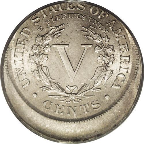 <B>1893<5C> Liberty Nickel--Struck 15% Off Center--MS64 PCGS.</B></I> Struck off center toward 6 o'clock. About half the date is off the flan, but all digits are recognizable. A lustrous and intricately struck near-Gem. A few tiny planchet flakes, as made, but the quality is superior for the grade.