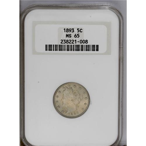 1893 5C MS65 NGC. Brilliant and lustrous light gray su 1893[5C] MS65 NGC.
