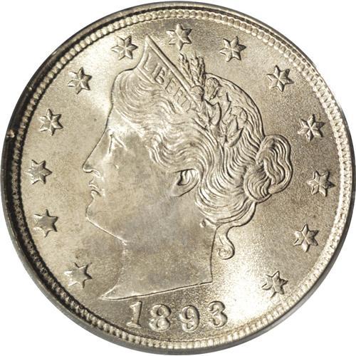 <B>1893<5C> MS66 PCGS.</B></I> Ex: Baxi. A stunning specimen with both superior technical merit and remarkable eye appeal. Boldly struck, (save for a couple of the stars), with no weakness noted on the wreath, and with essentially pristine surfaces. Hints of golden color are discerned mostly on the reverse, but this does not impair the effect of the intensely lustrous surfaces. While the 1893 Liberty nickel is somewhat more frequently encountered in grades ranging up to full Gem than many of the other pre-1900 issues, it is nearly unobtainable finer, with only nine examples certified by PCGS at this grade level to date (5/06), and none finer.