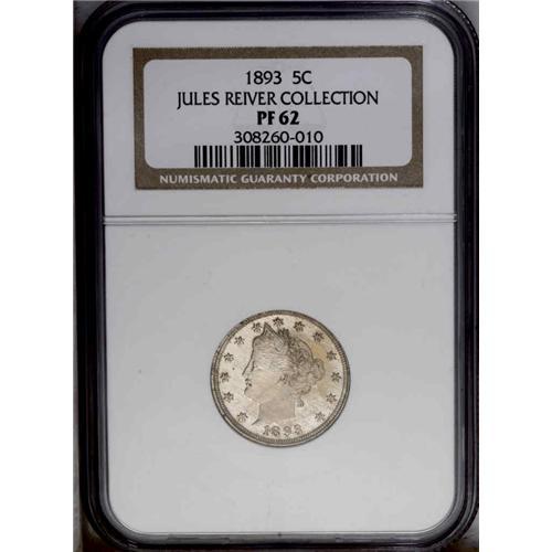 1893 5C PR62 NGC. Sharply struck, with medium gray-gol 1893[5C] PR62 NGC.