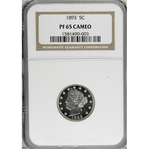 1893 5C PR65 Cameo NGC. NGC Census: (25/33). PCGS